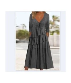 Casual Long Sleeve V Neck Tie Irregular Cake Dresses Wholesale Dresses N5923090100070