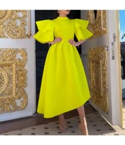 Elegant Double Layer Ruffle Sleeves Solid Color Large Hem Dress Wholesale Dresses V5923050500002