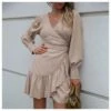 Sexy V-Neck Ruffles Dress Three-Quarter Sleeve Solid Color Wholesale Dresses SDN561494