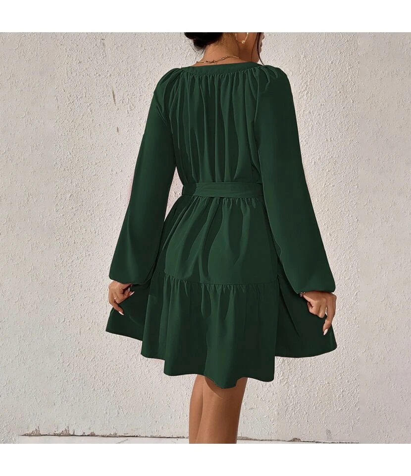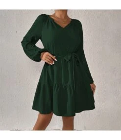 Sexy V-Neck Ruffles Dress Three-Quarter Sleeve Solid Color Wholesale Dresses SDN561494