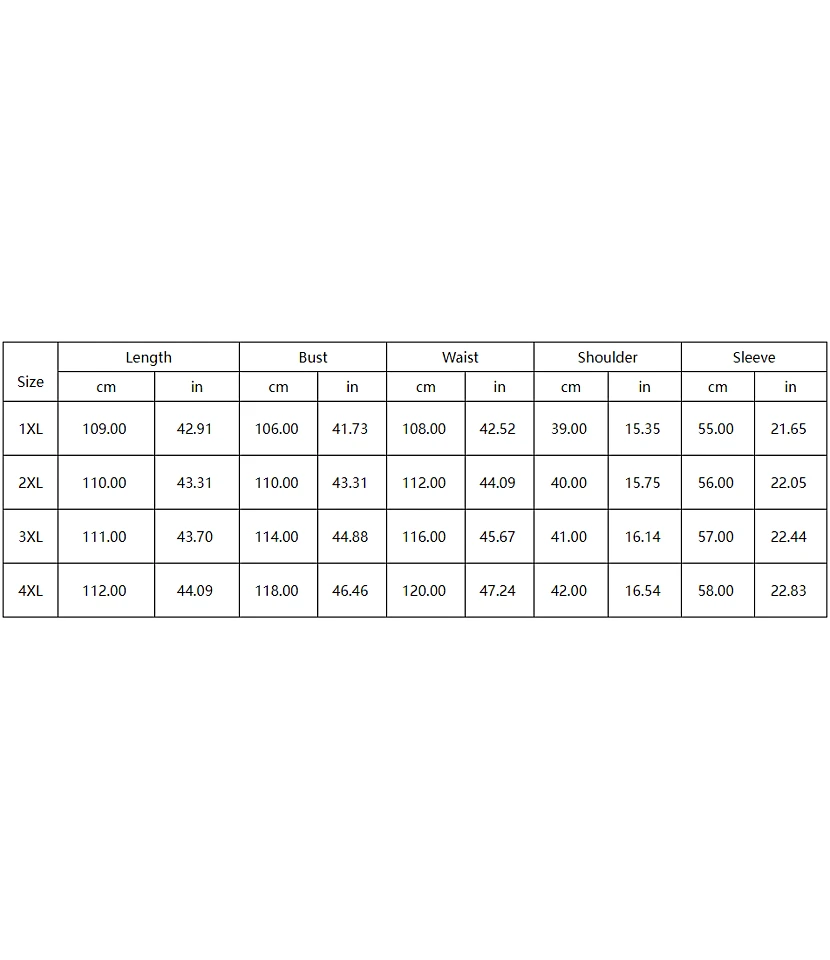 | Size | XL, XXL, 3XL, 4XL |