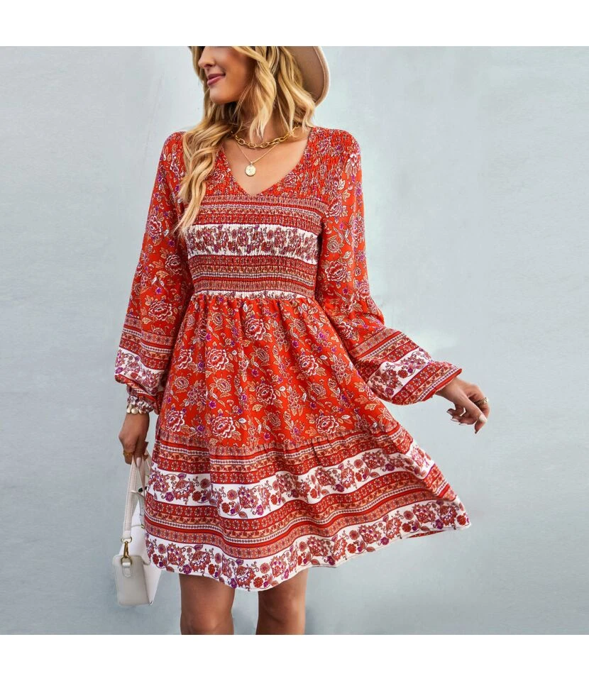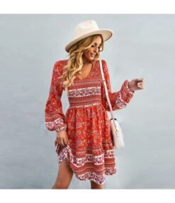 Be the first to review “Casual V Neck Print A-Line Dresses Long Sleeve Wholesale Bohemian Dress For Women SDN562270” Cancel reply