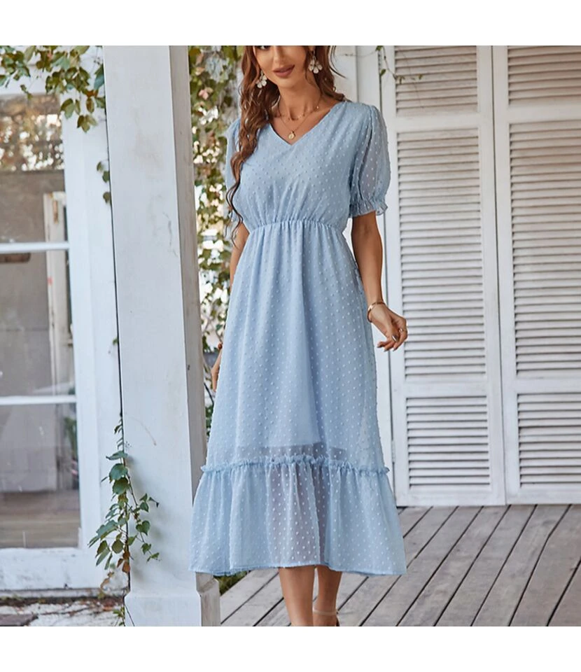 Be the first to review “Elegant V Neck Flocking Midi Dress Short Sleeve Solid Color High Waist Wholesale Dresses SDN560431” Cancel reply