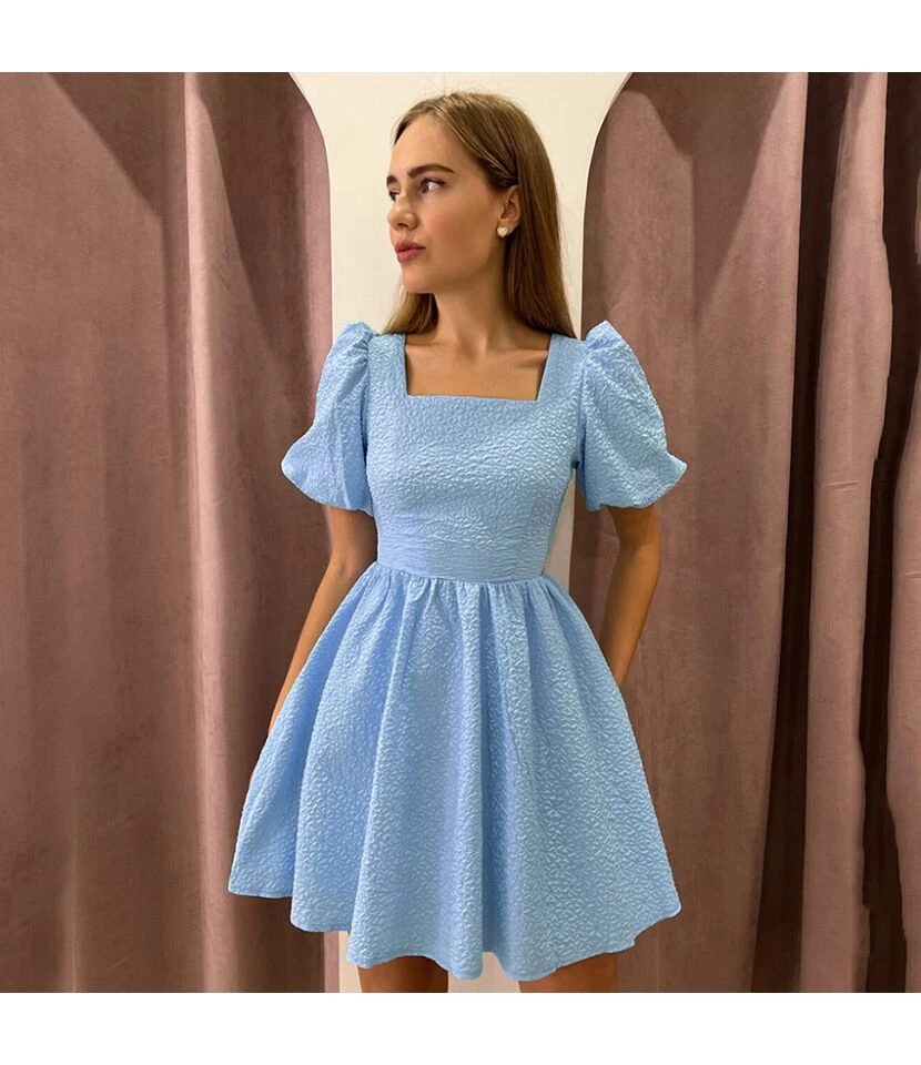 Be the first to review “Fashion Square Neck Bubble Sleeve Jacquard Backless A-Line Mini Dress Wholesale Dresses SDN562841” Cancel reply