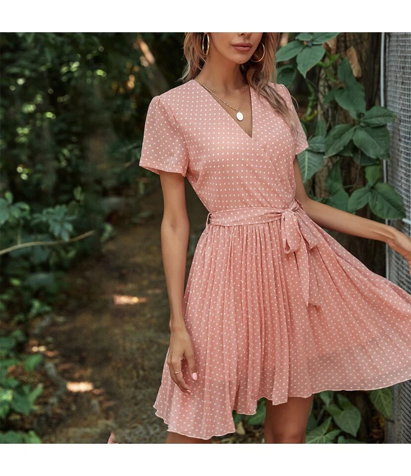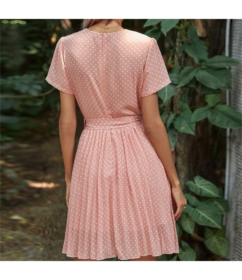 Be the first to review “Fashion V Neck Polka Dot Dress Short Sleeve Slim A-Line Wholesale Dresses With Belt SDN560452” Cancel reply