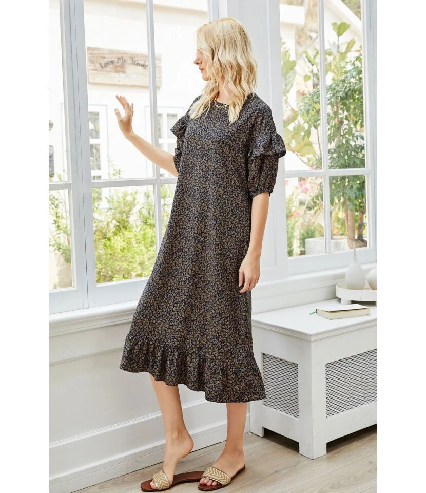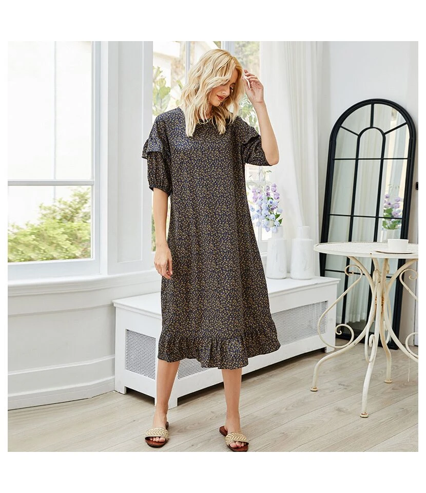 Be the first to review “Floral Print Women Fashion Bubble Sleeve O Neck Ruffle Hem Wholesale Midi Dresses” Cancel reply
