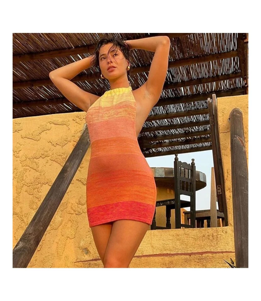 Be the first to review “Gradient Sunset Print Halterneck Open Back Sling Pack Hip Knit Bodycon Dress Sexy Wholesale Jersey Dresses SDN532878” Cancel reply