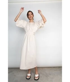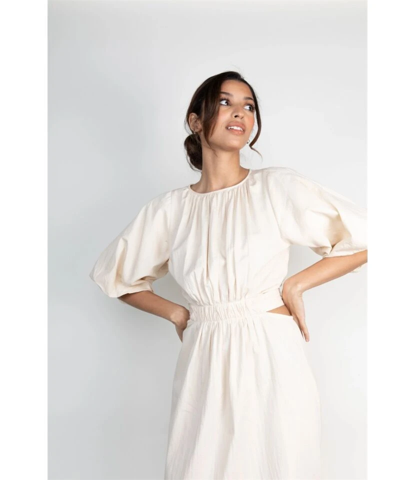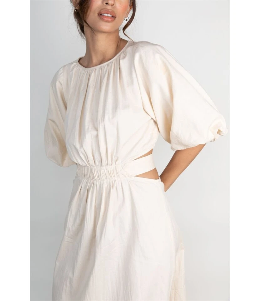 Temperament Round Neck Strapless Short-Sleeved Pleated Waist Dress Wholesale Dresses N5323032800183
