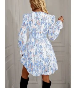 Lantern Sleeve Pleated Print Temperament Elegant Long-Sleeved Dress Wholesale Dresses N4623062500011