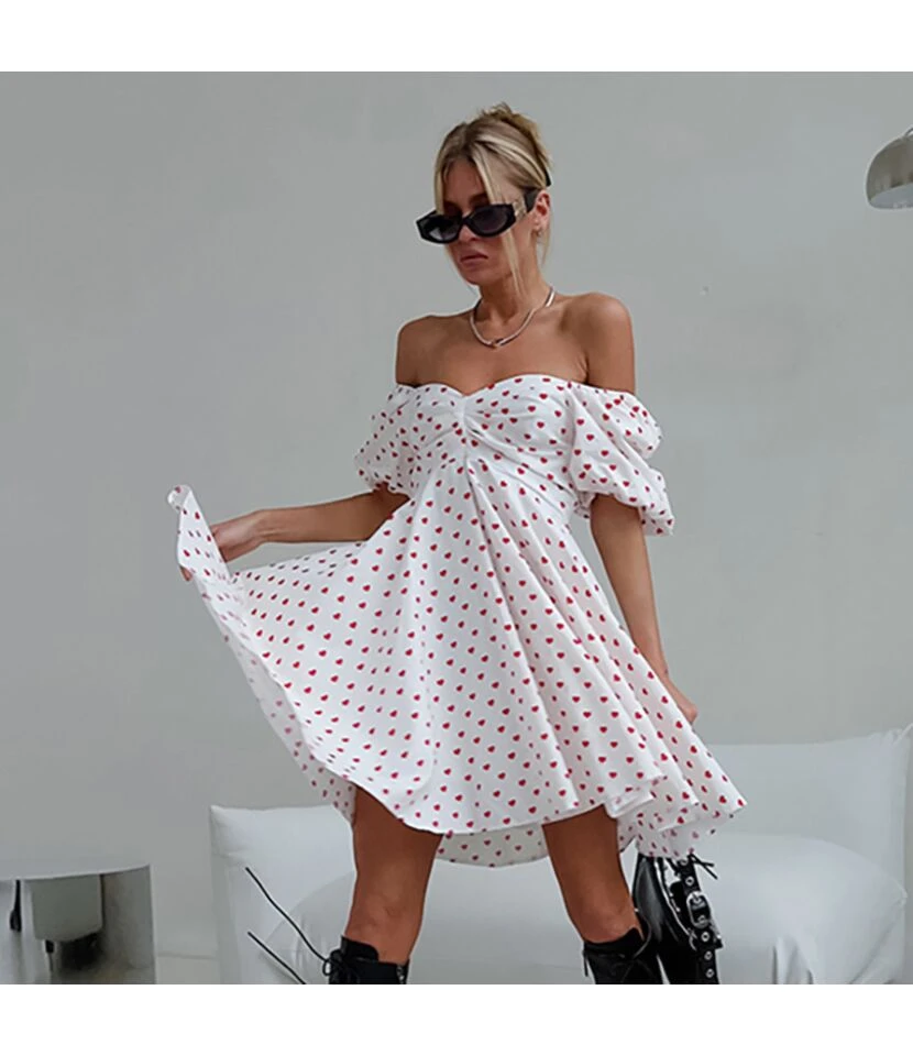 Be the first to review “One Word Neck Strapless Heart Print Puff Sleeve Dress Wholesale Dresses N4623070600023” Cancel reply