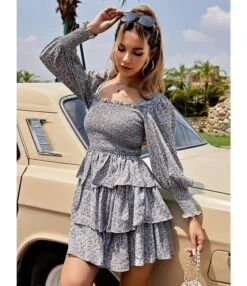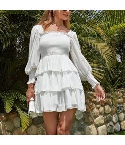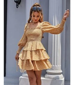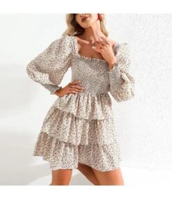 Be the first to review “Plain & Print Long Lantern Sleeve Square Neck Chiffon Layered Skirts Design Cake Dress Resort Wholesale Dresses SDN532456” Cancel reply