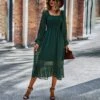 Commuting Short-Sleeved Solid Color Pleated V-Neck Dress Wholesale Dresses N461623030900084
