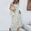 Floral Print V-Neck Frill Sleeve Midi Swing Dress Casual Summer Wholesale Dresses SD204674