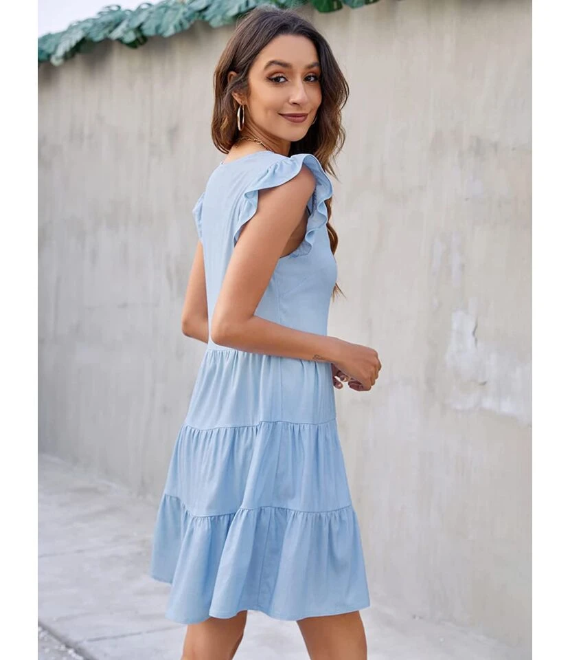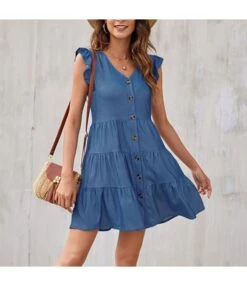 Sexy V-Neck Ruffles Dress Three-Quarter Sleeve Solid Color Wholesale Dresses SDN561494