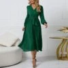Commuting Short-Sleeved Solid Color Pleated V-Neck Dress Wholesale Dresses N461623030900084