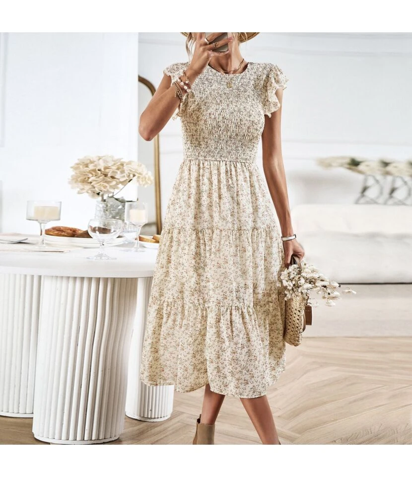 Be the first to review “Round Neck Pleated Flying Sleeve Floral Temperament Elegant Dress Wholesale Dresses N4623062800004” Cancel reply