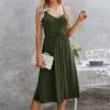 Floral Print V-Neck Frill Sleeve Midi Swing Dress Casual Summer Wholesale Dresses SD204674
