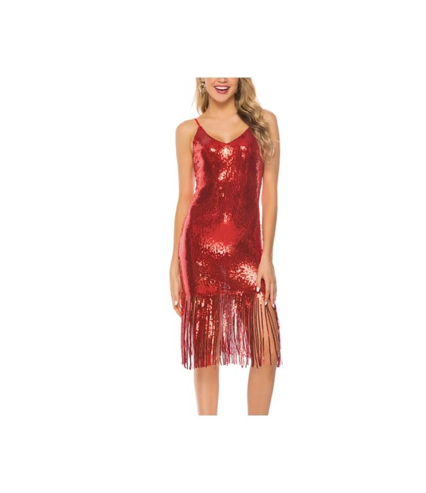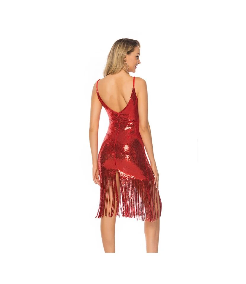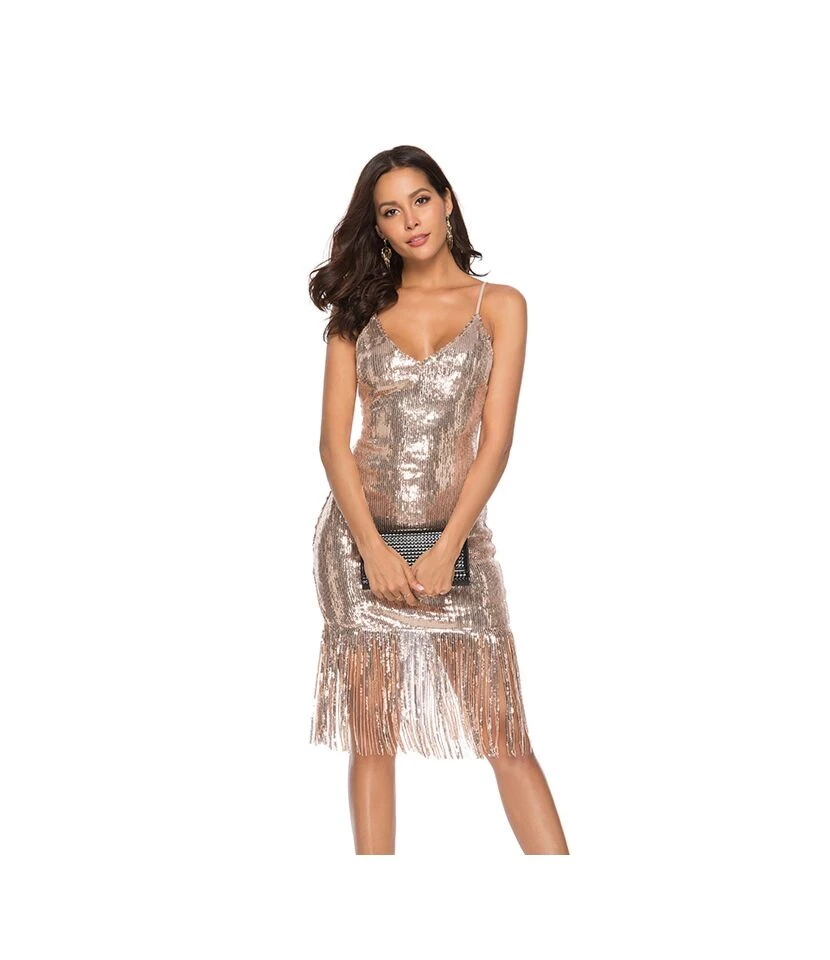Be the first to review “Sexy Deep V-Neck Sequin Tassel Nightclub Backless Halter Midi Dress Wholesale Dresses SDN562803” Cancel reply