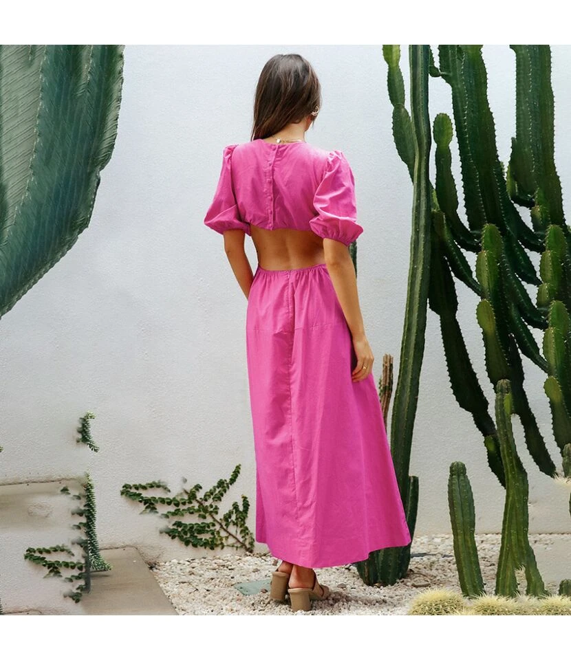 Be the first to review “Sexy Hollow Out Asymmetric Puff Sleeve Solid Color Midi Wholesale Dresses SDN560944” Cancel reply
