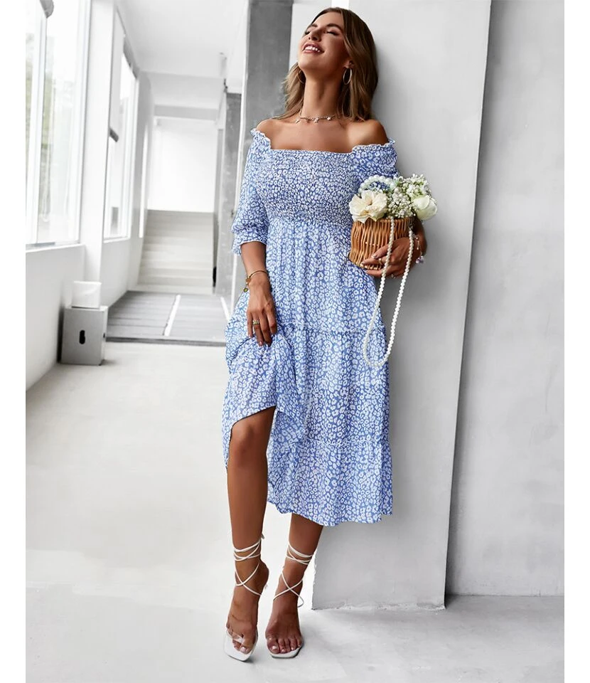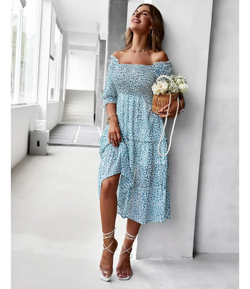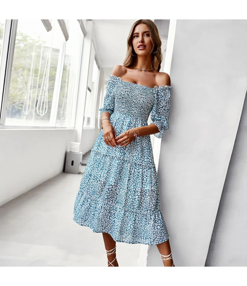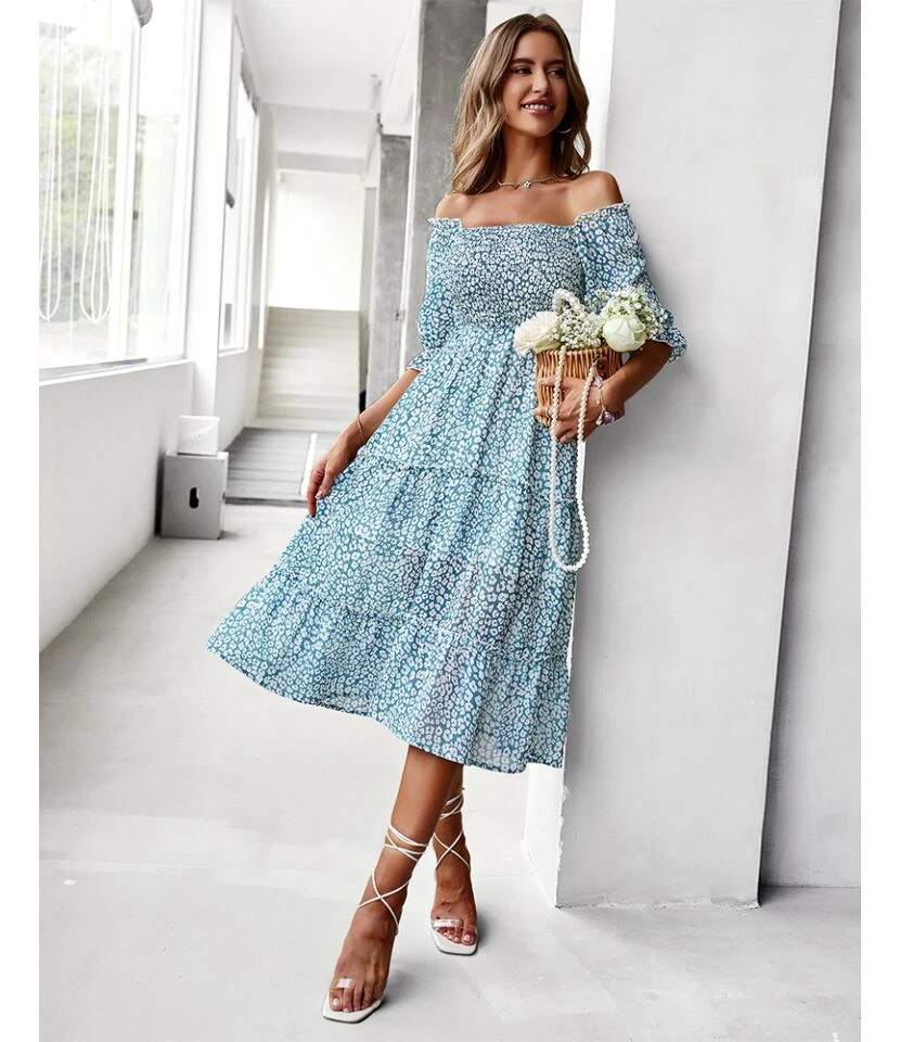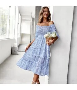 Be the first to review “Sexy Off Shoulder Floral Midi Swing Dress High Waist Petal Sleeve Slim Vacation Wholesale Dresses SDN560630” Cancel reply