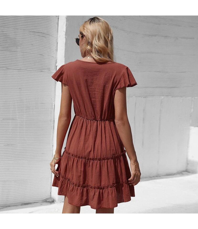 Be the first to review “Short Sleeve V Neck Ruffle Hem Wholesale Swing Dresses SD204543” Cancel reply