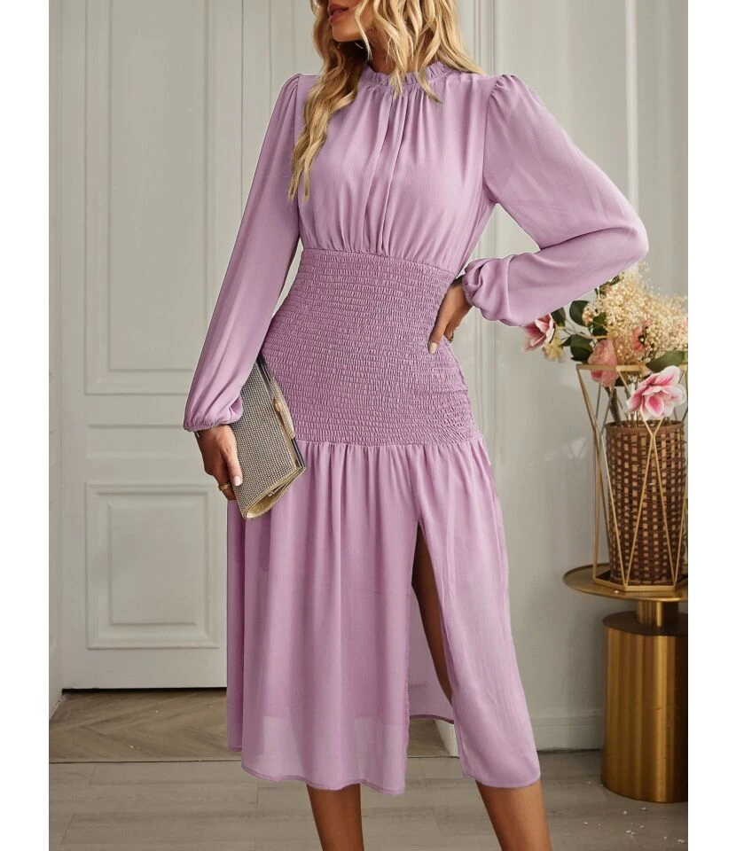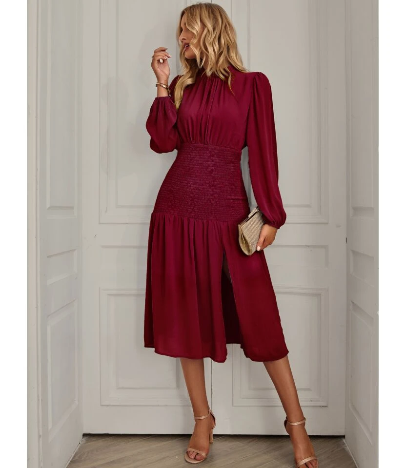 Be the first to review “Slit Lantern Sleeve Slim Pleated Solid Color Temperament Midi Dress Wholesale Dresses SDN538027” Cancel reply