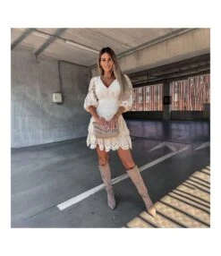 Hollow Half-Sleeved Irregular Lace V-Neck Layered Dress Wholesale Dresses N4601423032800161