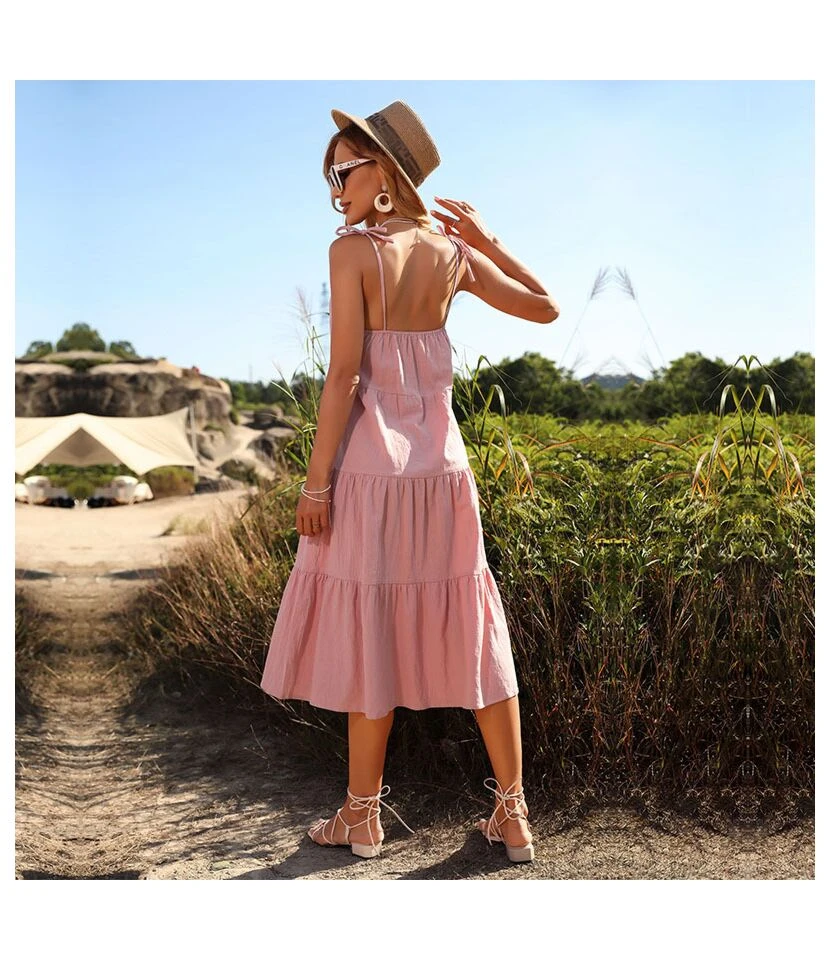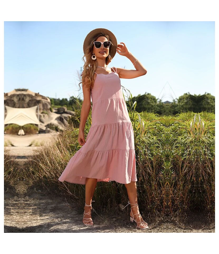 Be the first to review “Solid Color Spaghetti Strap Sleeveless Pink Wholesale Swing Dresses SD168429” Cancel reply