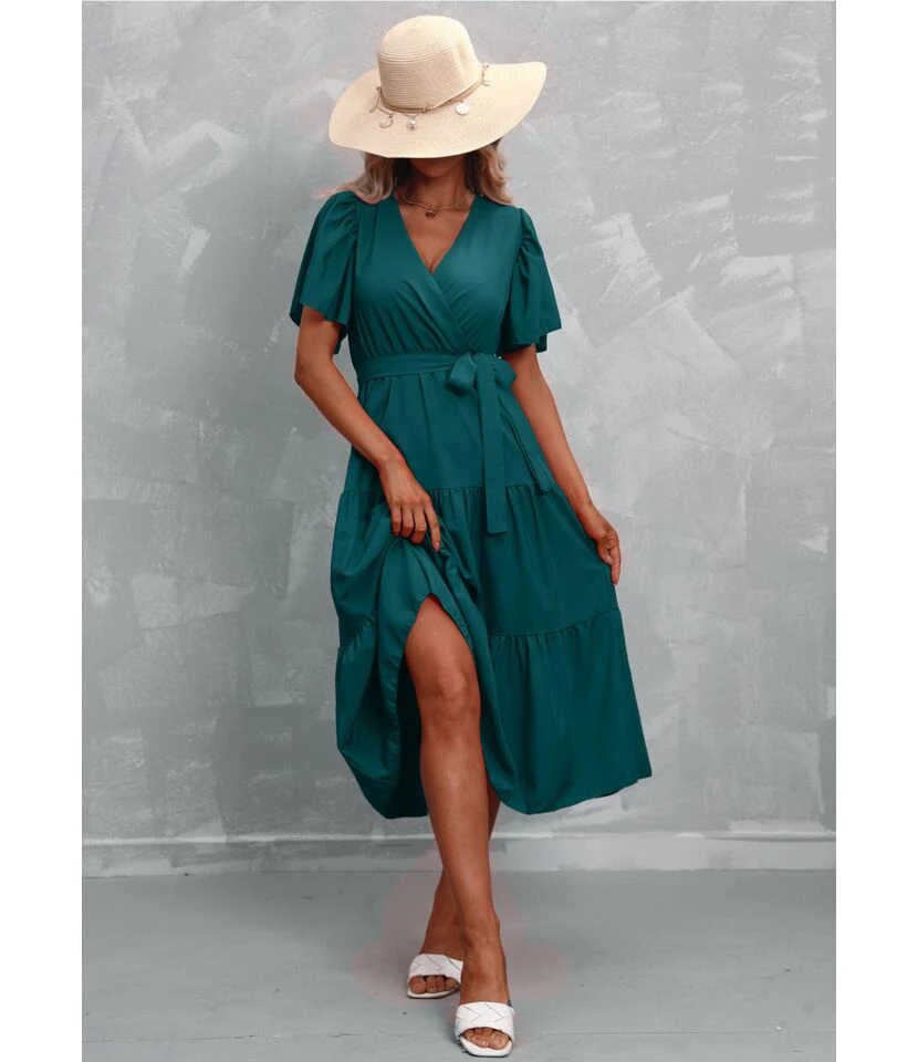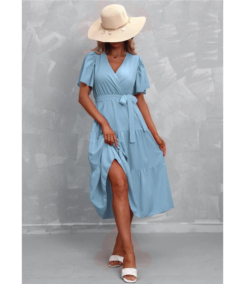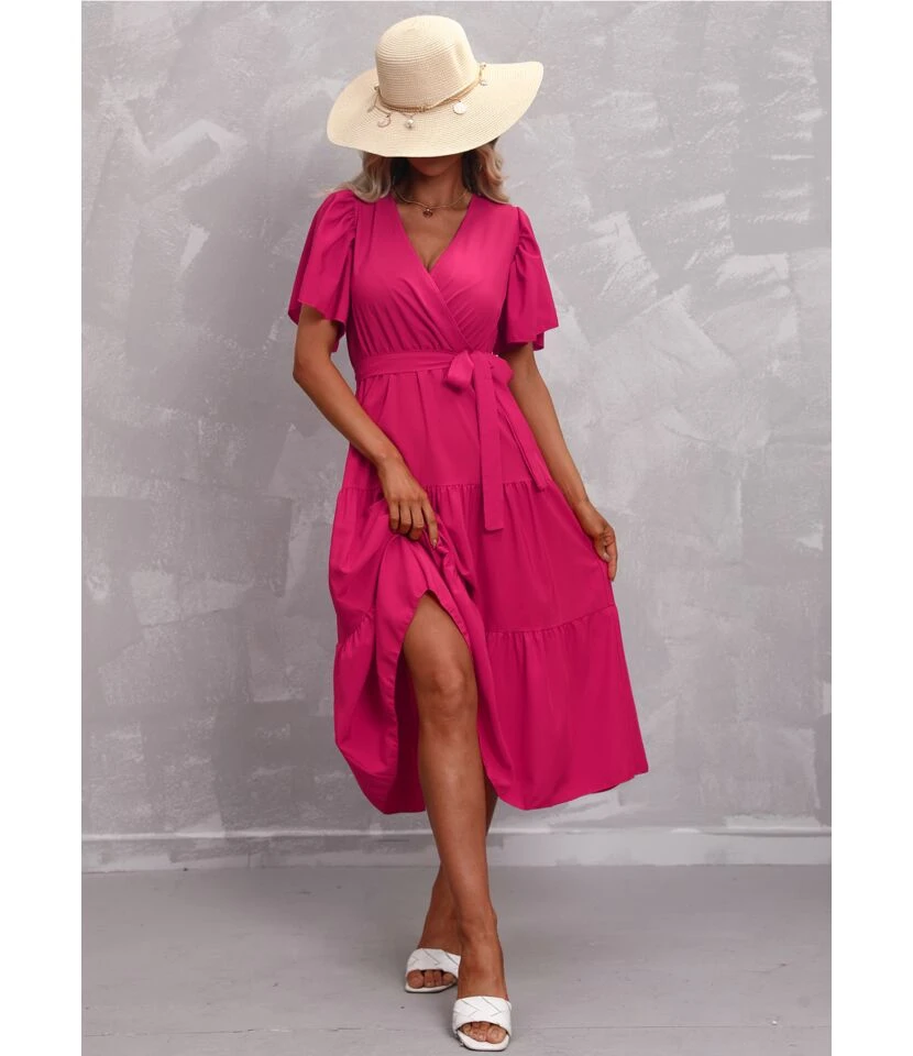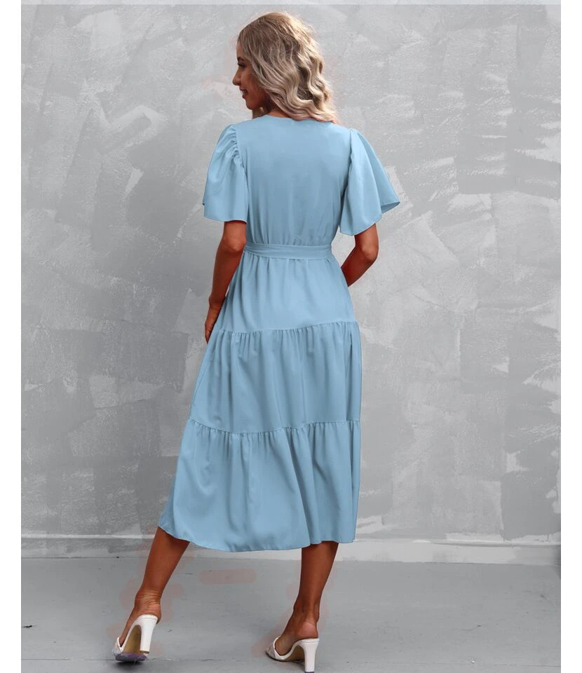 Be the first to review “Solid Color V-Neck Short Sleeve Mid-Length Smocked Dress Casual Wholesale Dresses SDN533393” Cancel reply