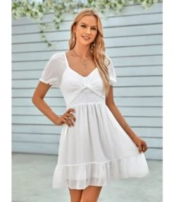 Temperament Round Neck Strapless Short-Sleeved Pleated Waist Dress Wholesale Dresses N5323032800183