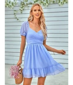 Sexy Deep V Ruffles Sleeve Dress Solid Color Lace-Up Backless Wholesale Dresses SDN560229