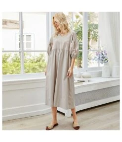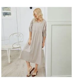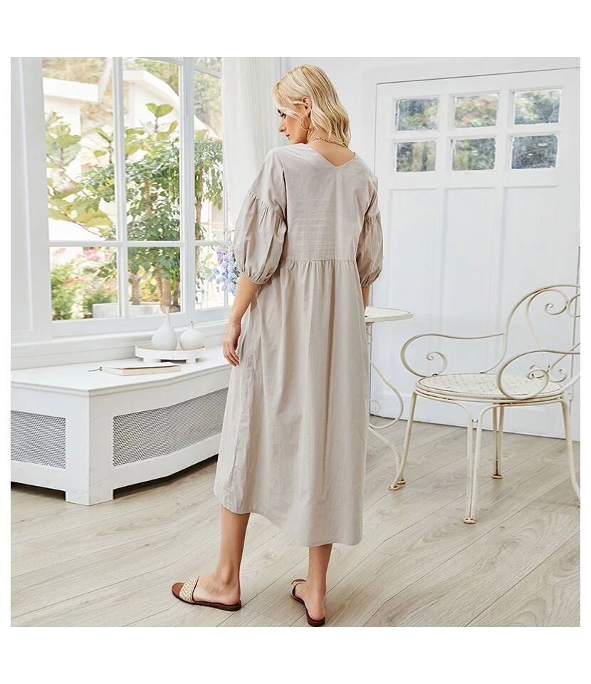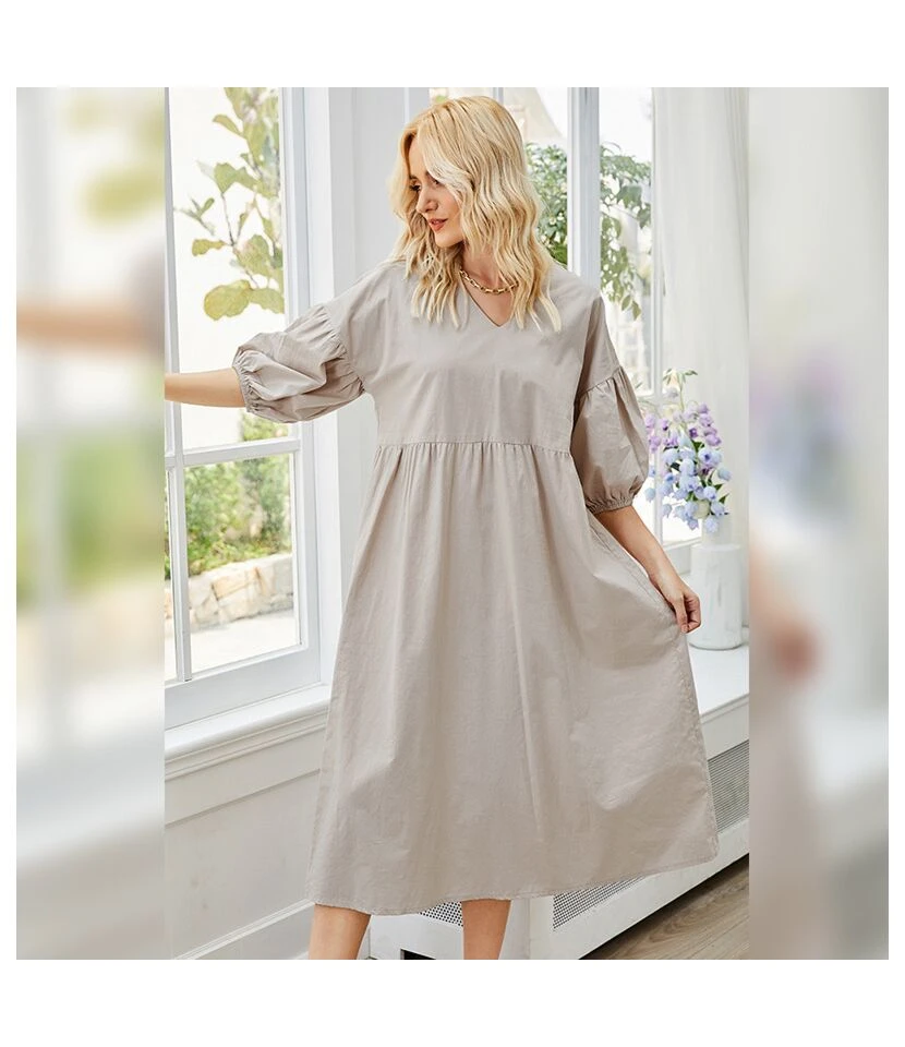 Be the first to review “Solid Color Women Fashion Puff Sleeve V Neck High Waist Casual Loose Wholesale Midi Dresses SD183650” Cancel reply