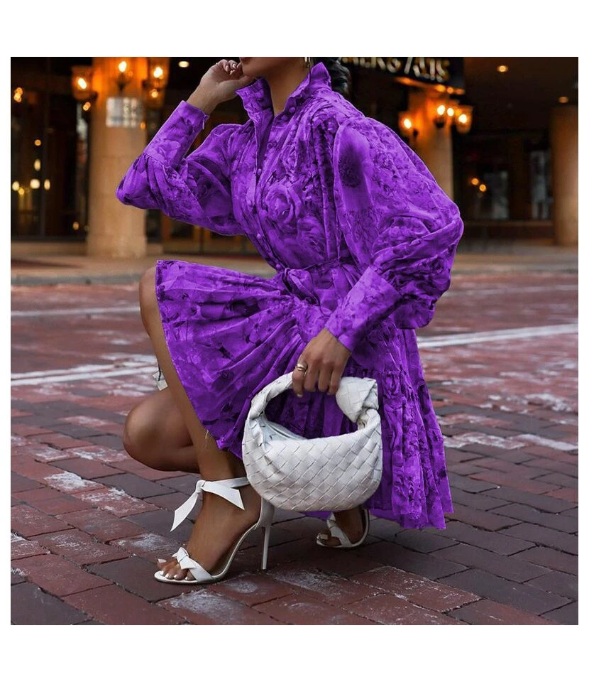 Long Sleeve Mid-Length Casual Waist Temperament Shirtdress Wholesale Shirt Dresses N5323021400229