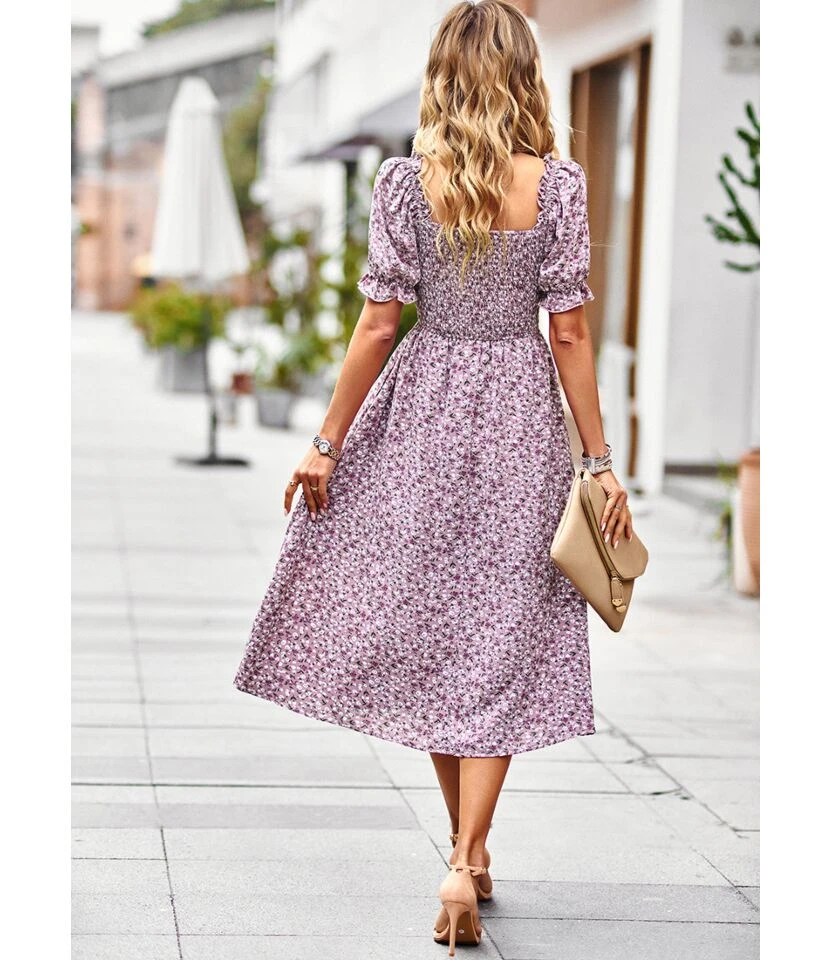 Commuting Short-Sleeved Solid Color Pleated V-Neck Dress Wholesale Dresses N461623030900084
