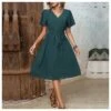 Commuting Short-Sleeved Solid Color Pleated V-Neck Dress Wholesale Dresses N461623030900084
