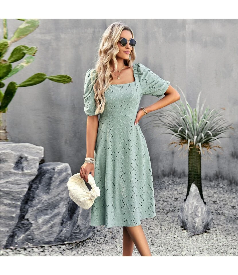 Sexy V-Neck Ruffles Dress Three-Quarter Sleeve Solid Color Wholesale Dresses SDN561494