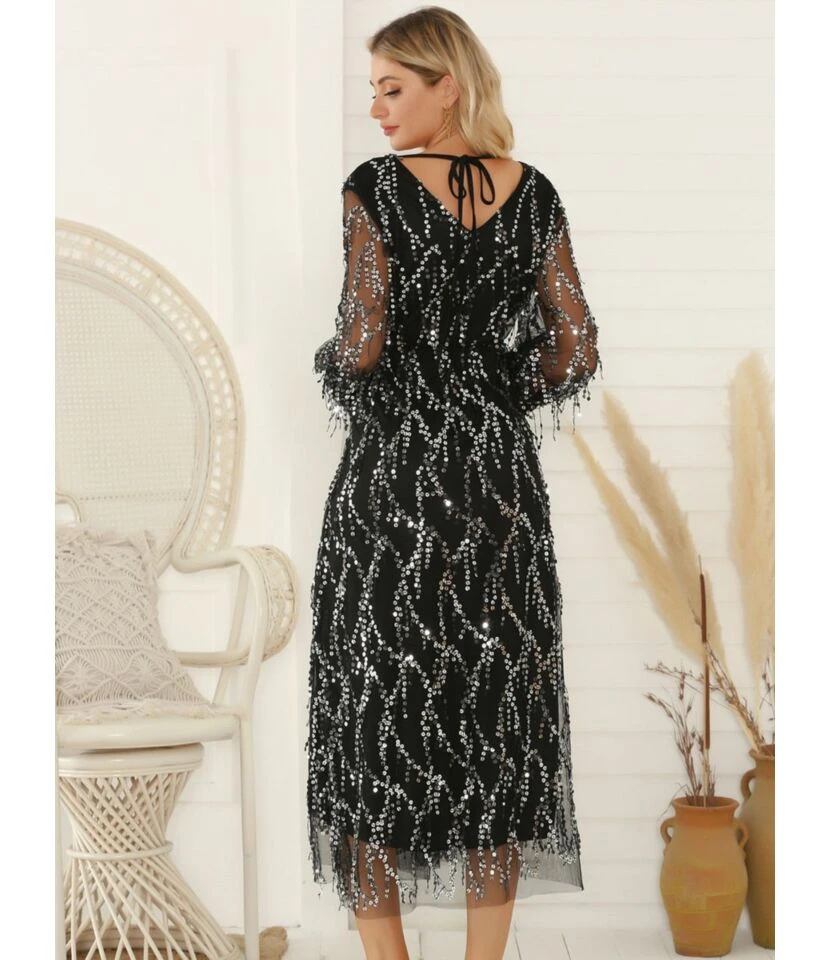 Be the first to review “V-neck Sequins Tassel Sheered Party Dress” Cancel reply