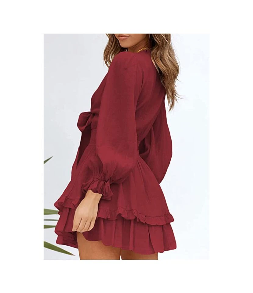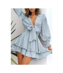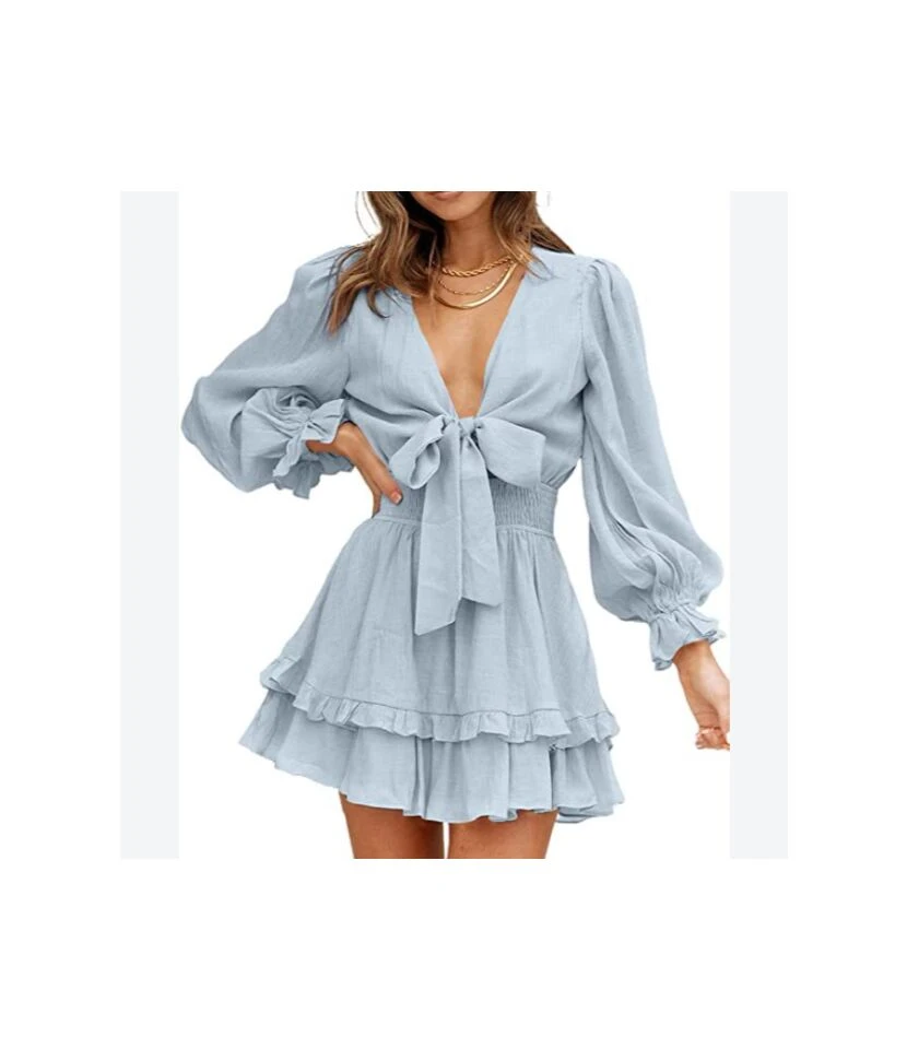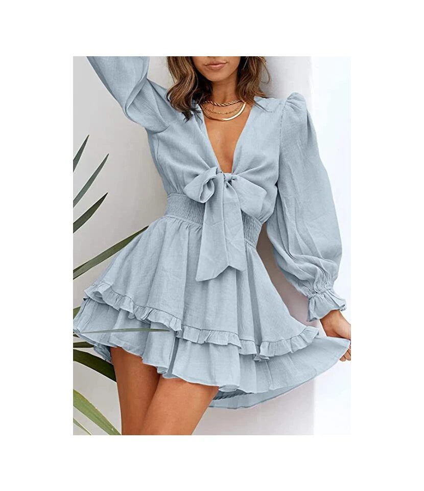 Be the first to review “V-Neck Solid Color Tieback Bowknot Long Lantern Sleeve Ruffle Dress Casual Wholesale Dresses SD531178” Cancel reply