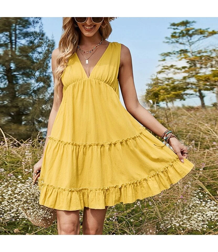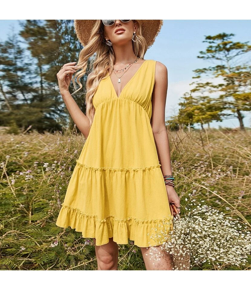 Sexy Deep V Ruffles Sleeve Dress Solid Color Lace-Up Backless Wholesale Dresses SDN560229