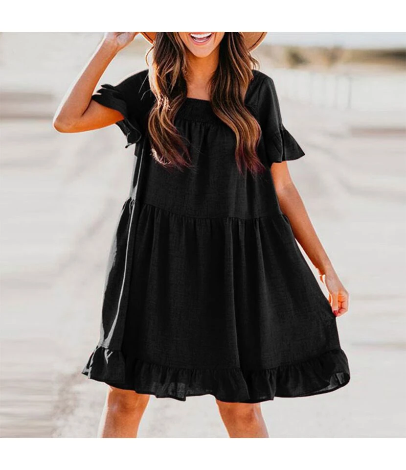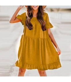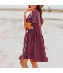 Be the first to review “Women Ruffle Short Sleeve Round Neck Wholesale Swing Dresses SDN580520” Cancel reply