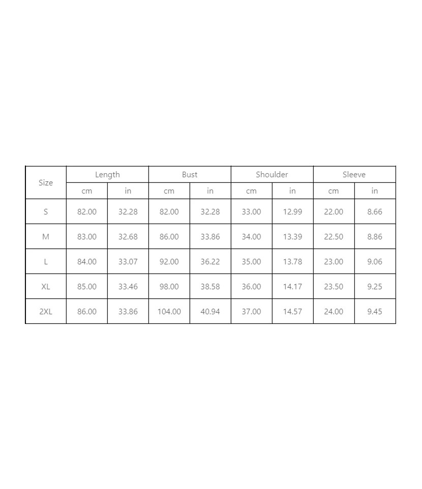 | Size | S, M, L, XL, XXL |