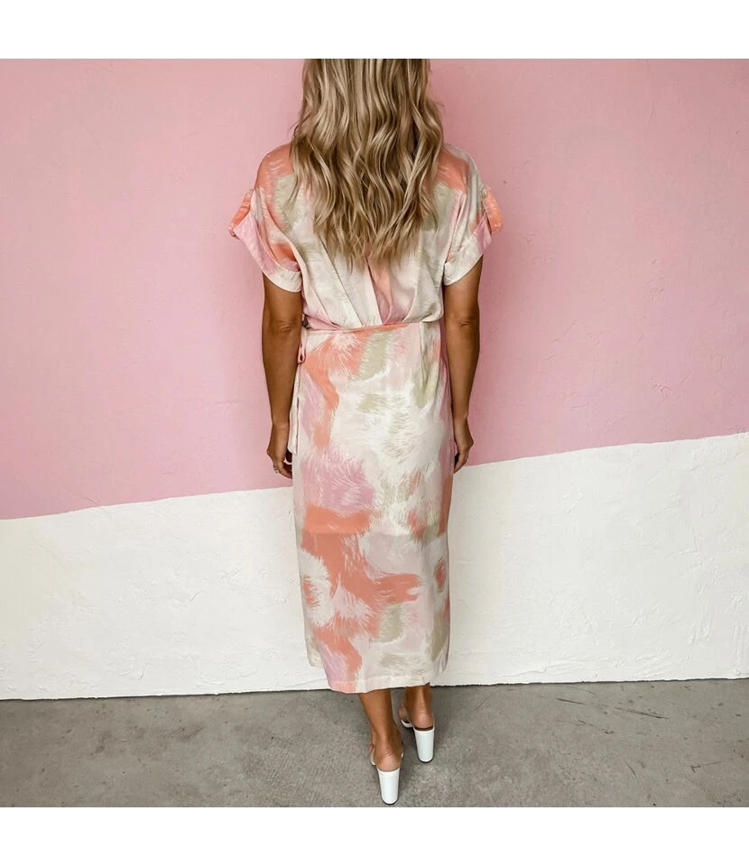 Casual French Vintage Print V-Neck Design Chiffon Dress Wholesale Dresses N5323032300036
